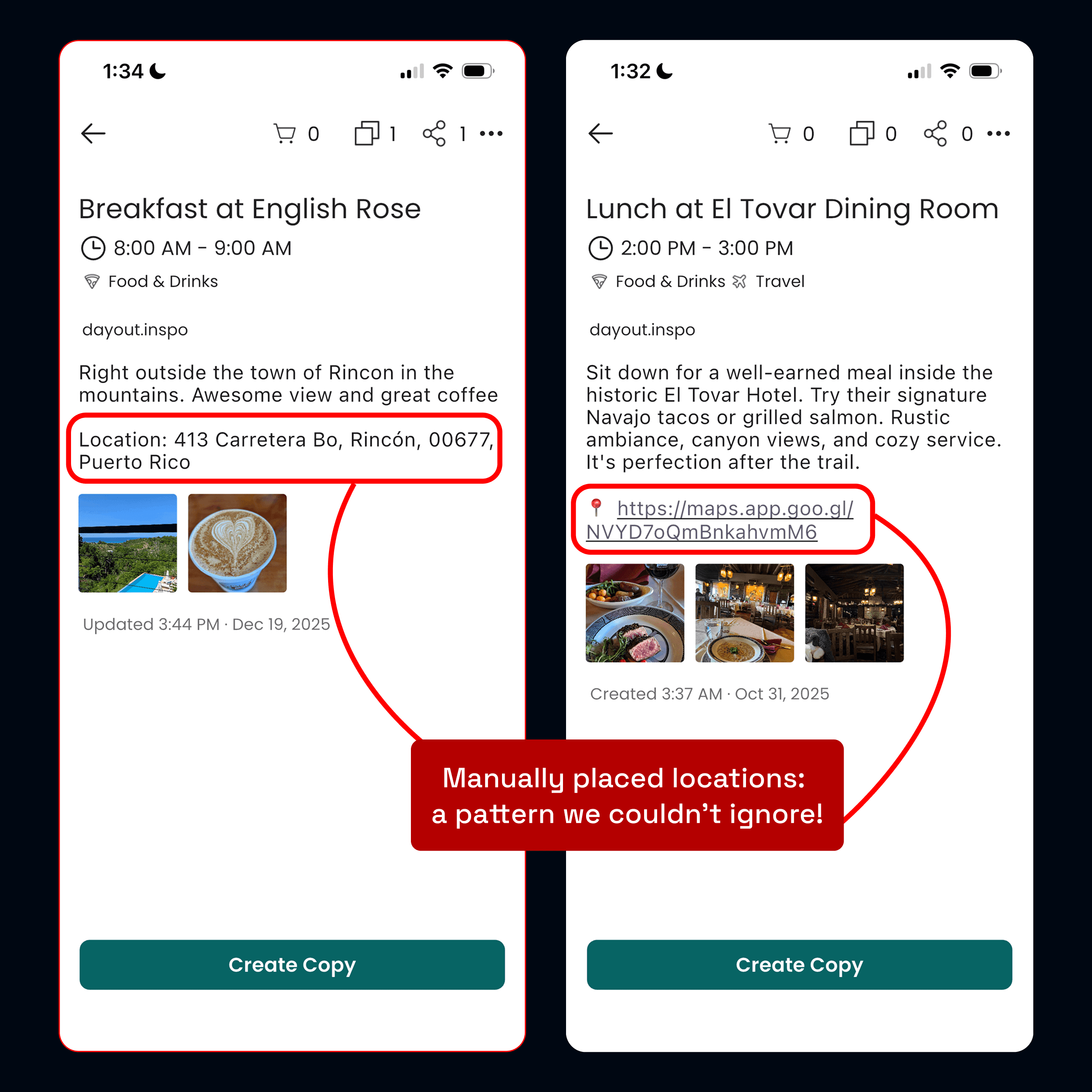 Some of our users had even started manually typing locations into the description box, signaling an unmet demand.