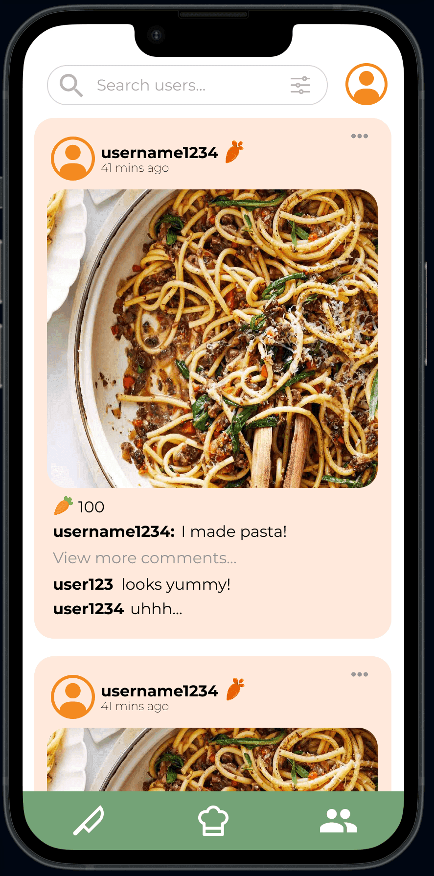 Social community also turned into its own social feed where users could view each other's dishes, comment, and cook their friends' dishes.