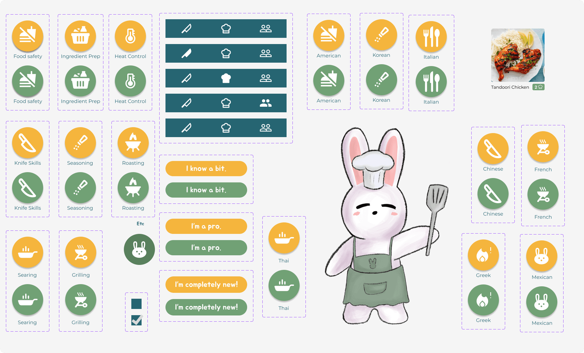 This became cooking skills, which users would progress through by completing harder and harder recipes that utilize those skills.