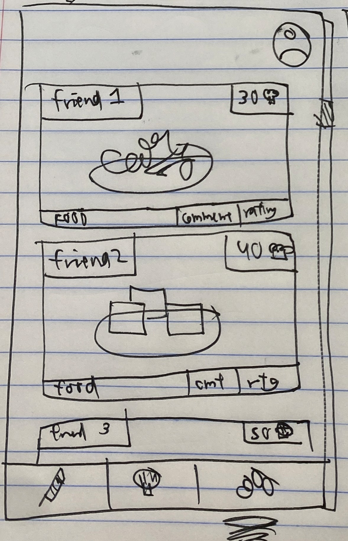 Rough wireframes on paper helped us turn design goals into app features.