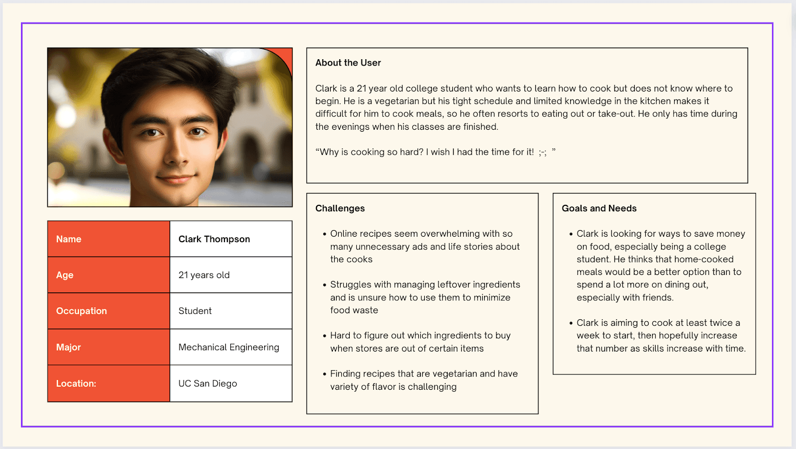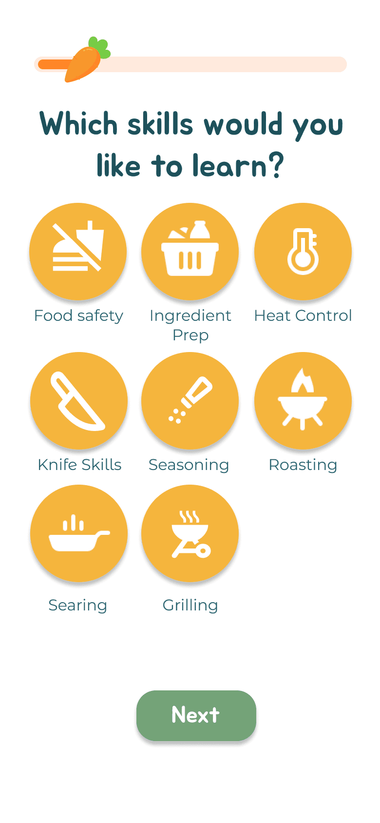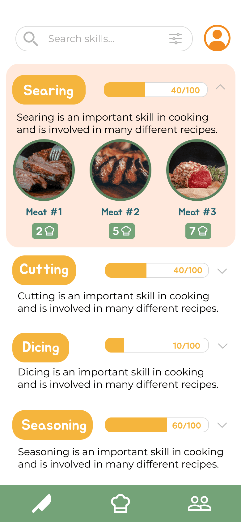As part of a design workshop with Design Co at UCSD, my team and I designed Munchie Masters, an app for college students designed to make cooking easier, more engaging, and socially interactive. Munchie Masters gamifies the cooking process through rewards, social engagement features, and a leveling system where users can progress by learning skills and cooking recipes.