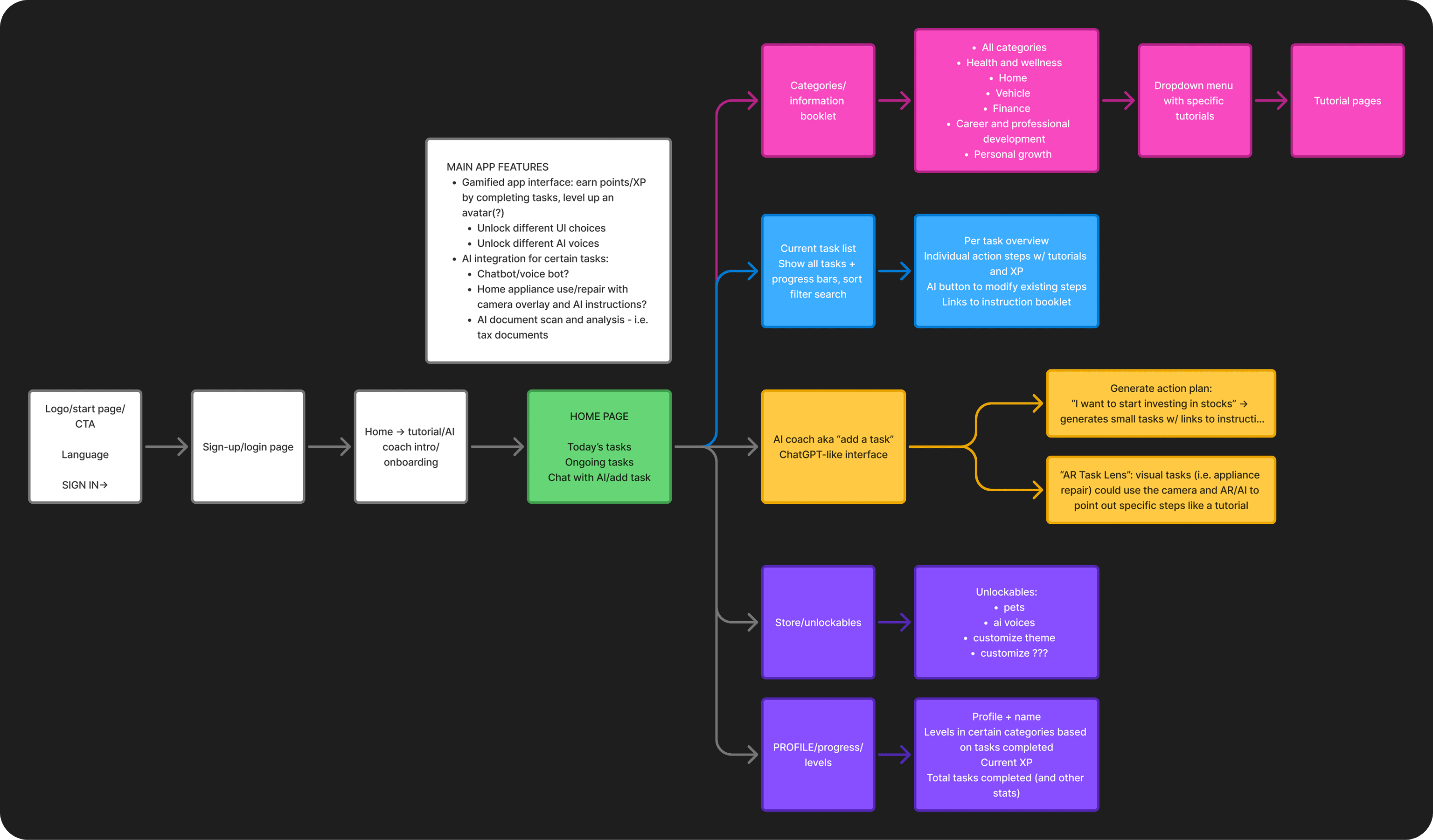 Once we had our core features, I took the lead on mapping out the user flow. My goal was to create a seamless journey that would guide users between these features intuitively without them feeling overwhelmed.